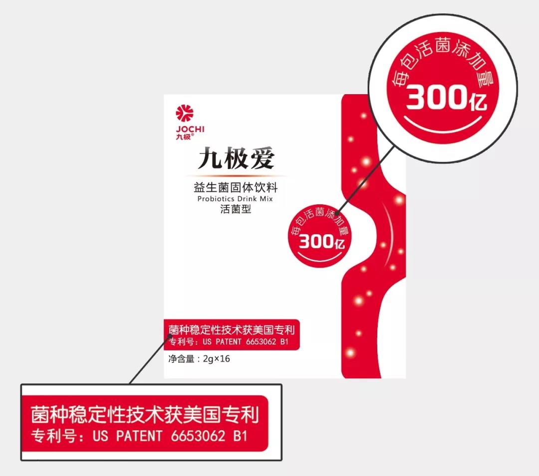 九極愛益生菌的菌種穩(wěn)定性技術(shù)獲美國專利(專利號:US PATENT 6653062 B1),每包