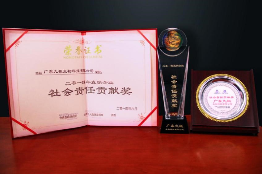 近年來(lái),九極產(chǎn)品獲得了廣大消費(fèi)者厚愛和好評(píng),獲得風(fēng)云2013亞太地區(qū)最具潛力企業(yè)獎(jiǎng)、2014直銷企業(yè)社會(huì)責(zé)任貢獻(xiàn)獎(jiǎng)、金口碑亞太區(qū)最具合作價(jià)值企業(yè)獎(jiǎng)等眾多殊榮,也被認(rèn)定為“廣州市高新技術(shù)企業(yè)”。